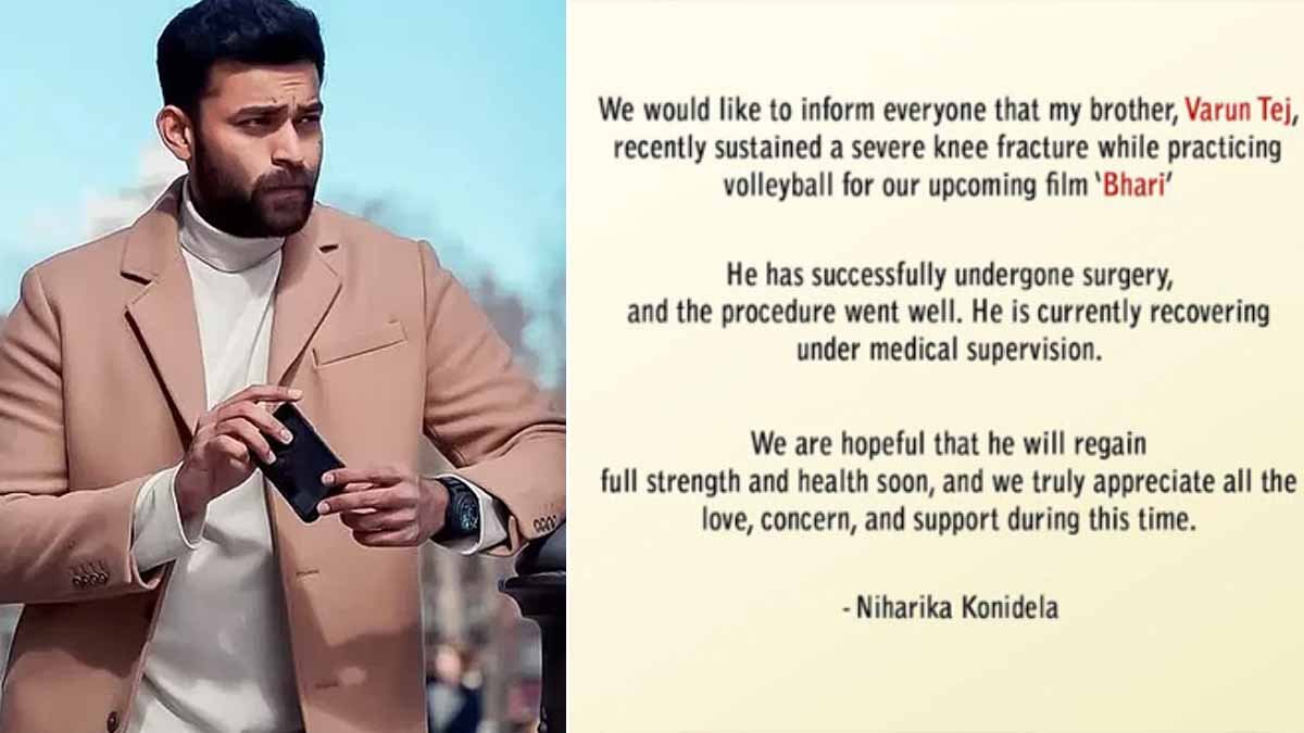 వరుణ్ తేజ్ గాయంపై వచ్చిన రూమర్లకు ఫుల్ క్లారిటీ ఇచ్చింది ఆయన సోదరి నిహారిక కొణిదెల. తన ఇన్స్టాగ్రామ్లో పోస్ట్ చేస్తూ, గాయం తీవ్రంగా ఉండటంతో సర్జరీ చేయాల్సి వచ్చిందని వెల్లడించారు. అయితే ప్రస్తుతం వరుణ్ తేజ్ ఆరోగ్యం మెరుగుపడుతోందని, త్వరలో పూర్తిగా కోలుకుంటారని తెలిపారు. ఈ పోస్ట్ చూసిన అభిమానులు సోషల్ మీడియాలో “గెట్ వెల్ సూన్” అంటూ పోస్టులు పెడుతున్నారు.